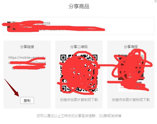 获取商品及店铺首页链接步骤二:弹出分享商品页面后点击复制链接即得到了商品链接